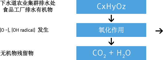 在原有的排水处理场是以微生物活性处理法为依据进行水的净化,通过微生物的硝化作用,净化及分解水里的有机物来形成水的净化。因此微生物吃有机物时剩下的残渣与微生物的尸体成为活性污泥。 利用新规Mecacellra装置时,通过mecacellra催化加上氯化学反应的氧化反应,将有机物进行无机物化,不依赖微生物的硝化作用,而通过原有的微生物氯反应来促进OH自由基的发生从而抑制微生物的进化作用。