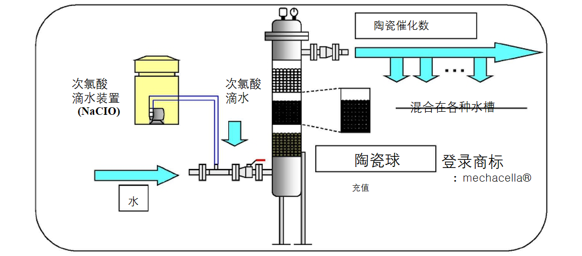 把混合混合后的水放入污水槽,通过催化作用来净化水。